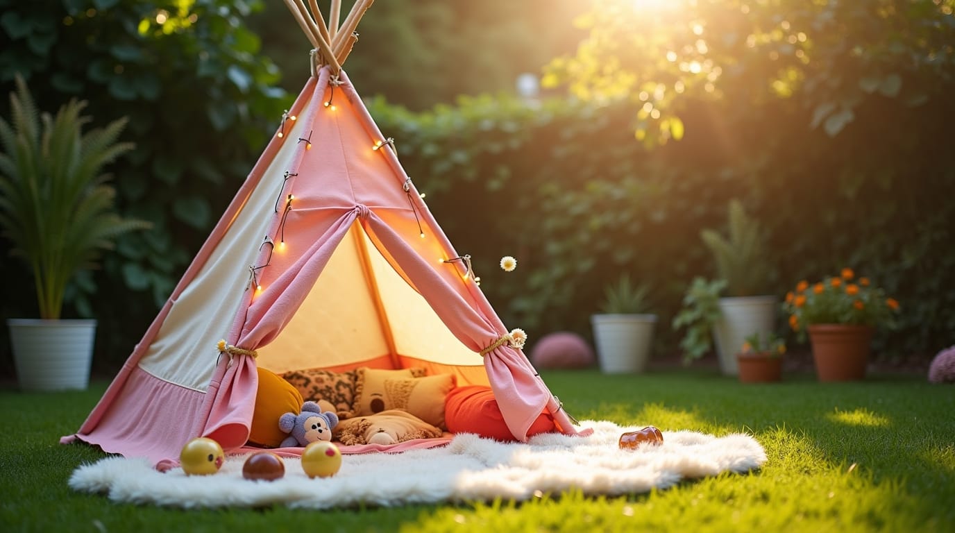 Add a teepee tent, soft rug, fairy lights, or a small sandbox. Adults get peace, kids get adventure.