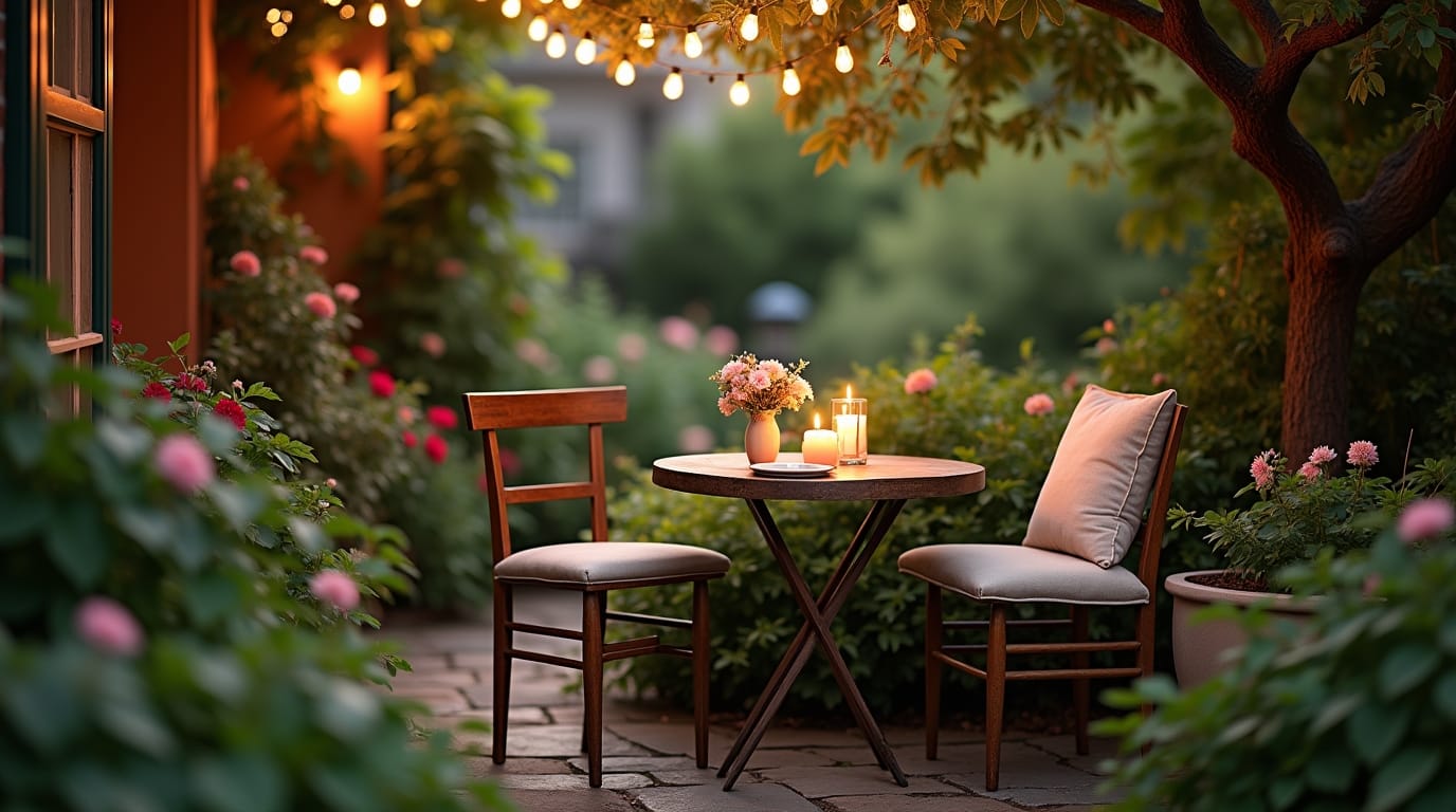 Add a bistro table and two chairs. Ideal for morning coffee, intimate dinners, or quiet moments outdoors.