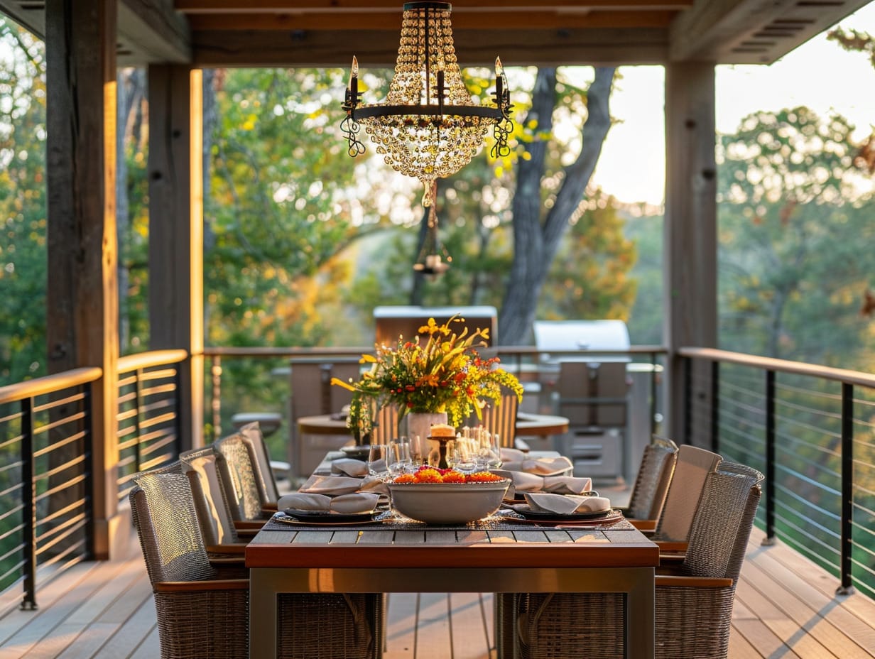 Hang a Crystal Chandelier Above the Deck Dining Area