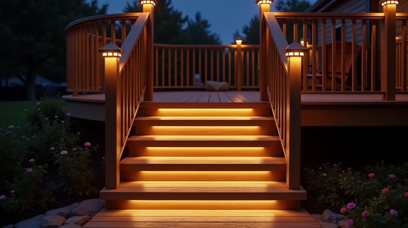 Post cap lights are an easy way to upgrade your deck’s railing system. These lights sit on top of posts, adding a decorative element that illuminates the perimeter of your deck. They come in various designs—from modern metal to traditional wood finishes—making them a versatile choice.