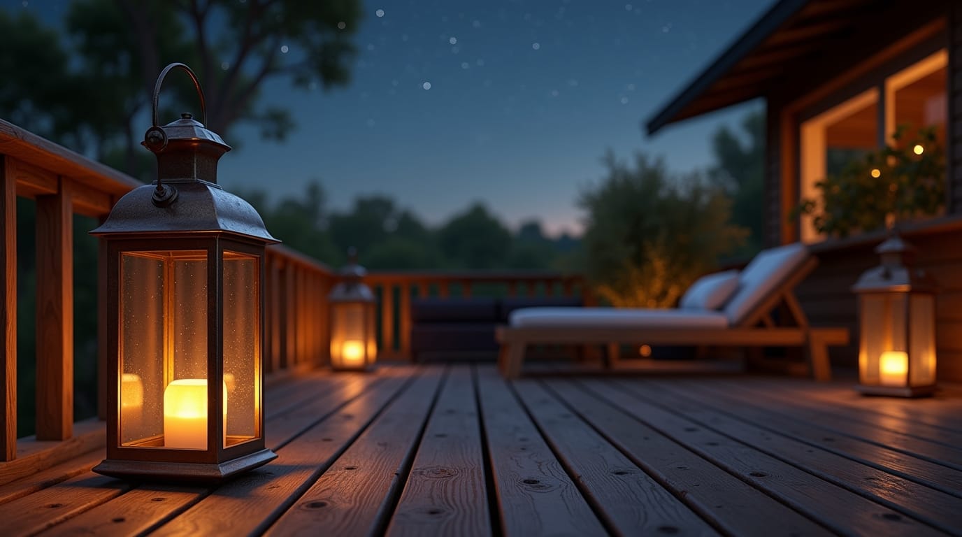 For flexible lighting, outdoor lanterns and portable LED lamps add charm and convenience. Place them on tables or corners of the deck for a soft, movable light source. You can even choose rechargeable or battery-operated options for maximum versatility.