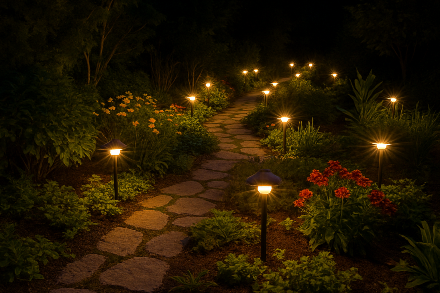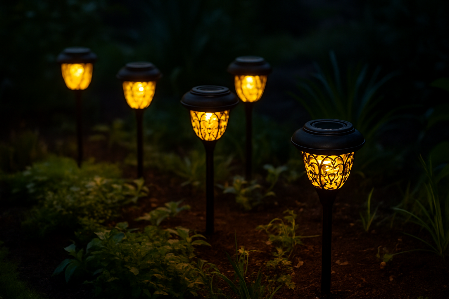 Eco-friendly and cost-effective, solar lights are great for borders, flower beds, and decorative accents.