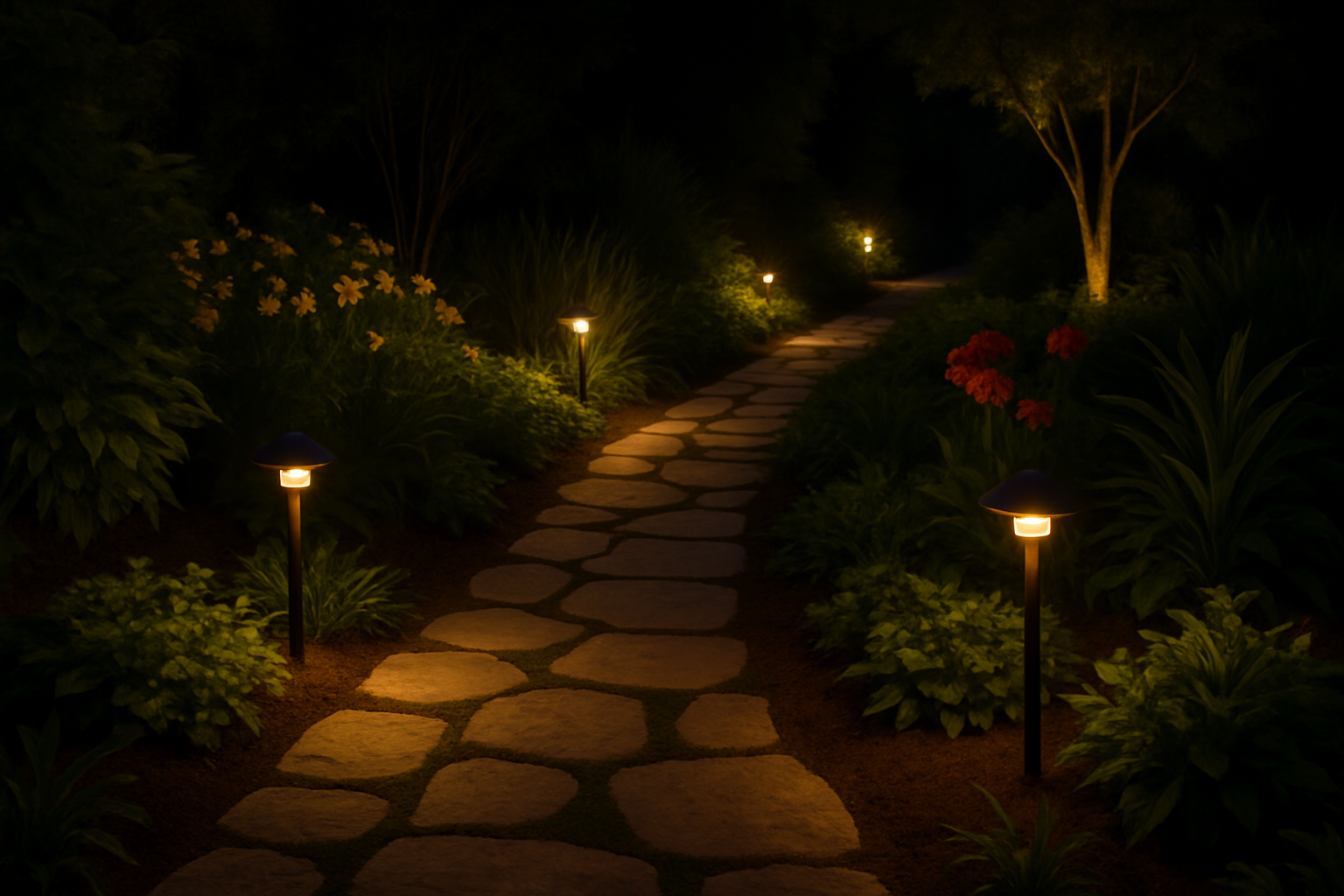 Install low-voltage path lights to illuminate walkways for both safety and aesthetic appeal.