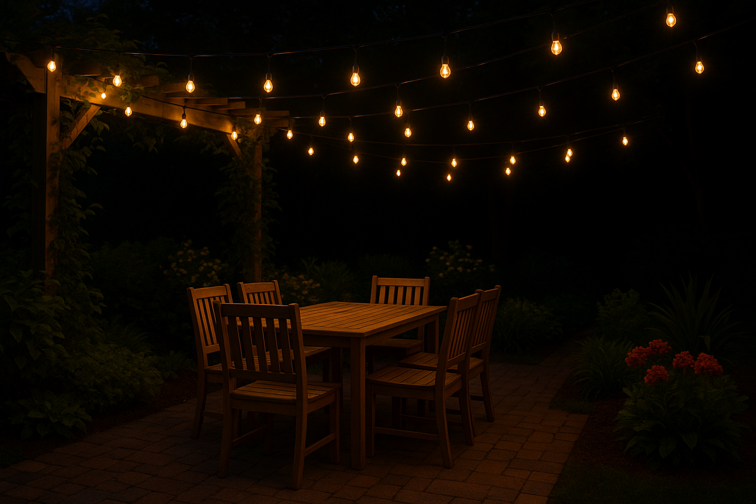 Festoon or string lights bring charm and intimacy—perfect for patios, pergolas, or above dining spaces.