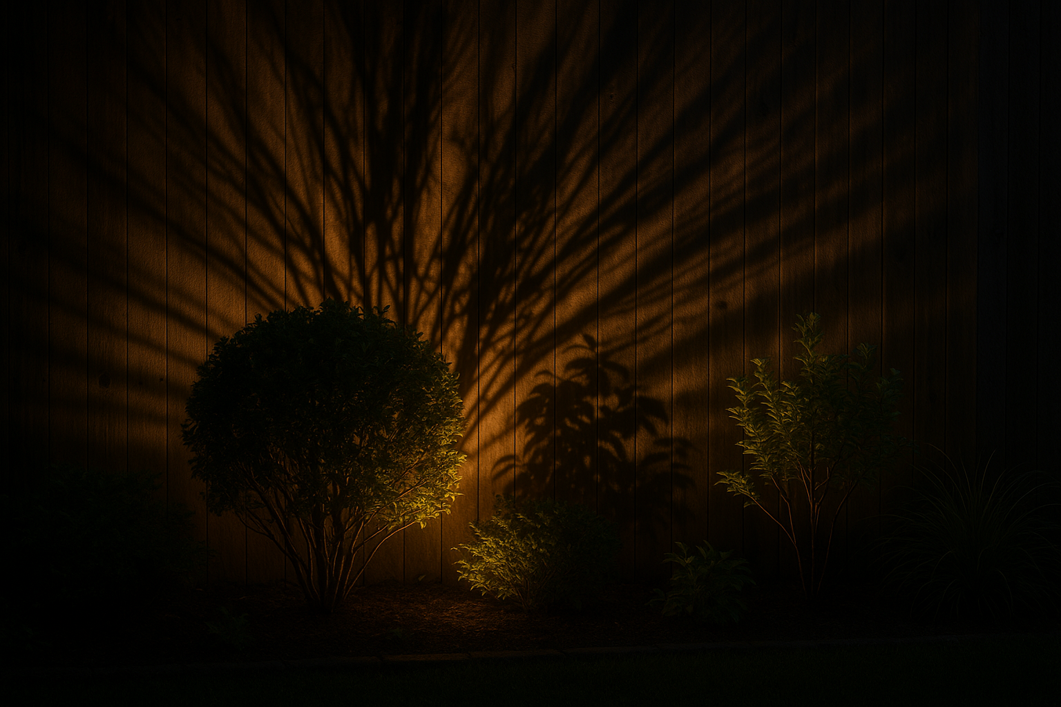 Place lights behind objects like shrubs or sculptures to cast dramatic shadows on walls or fences.