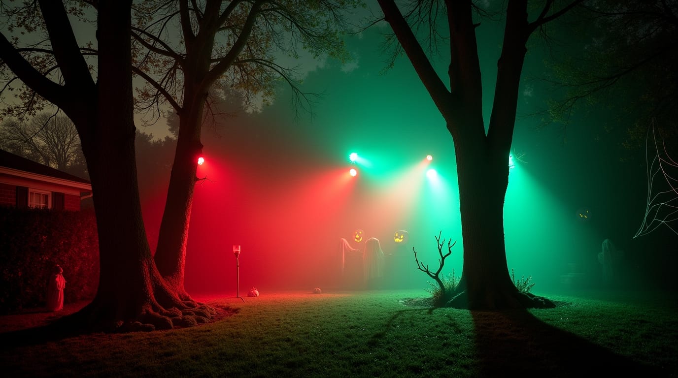 3. Colored Spotlights for a Haunted Effect