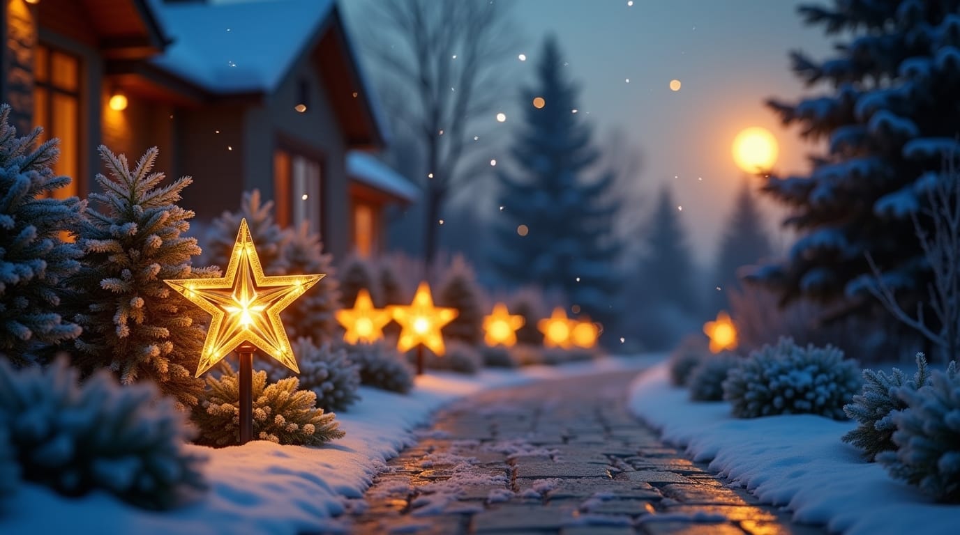 Eco-friendly solar path lights shaped like stars or snowflakes not only reduce energy costs but also keep your walkways safe. Place them strategically along driveways and garden paths to guide visitors with festive charm.