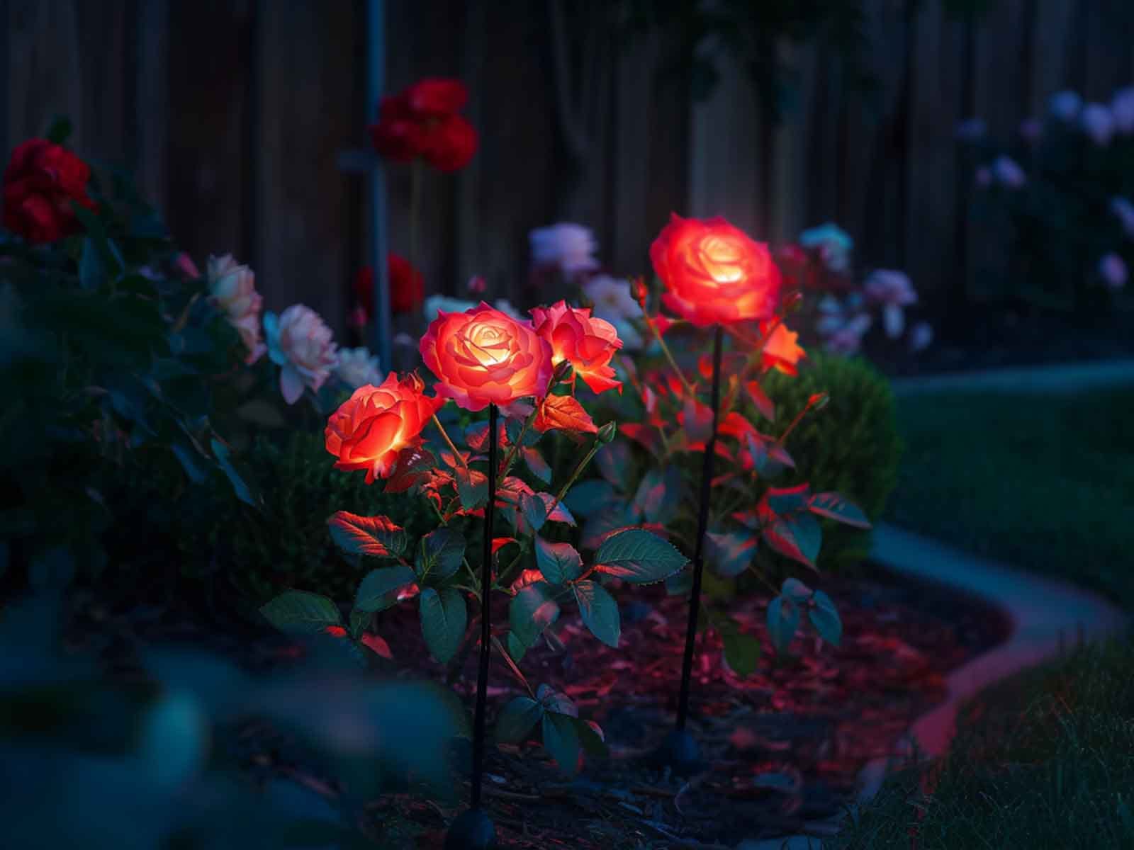 Install Rose Stake Lights Along the Perimeter of Your Lawn for a Subtle Glow