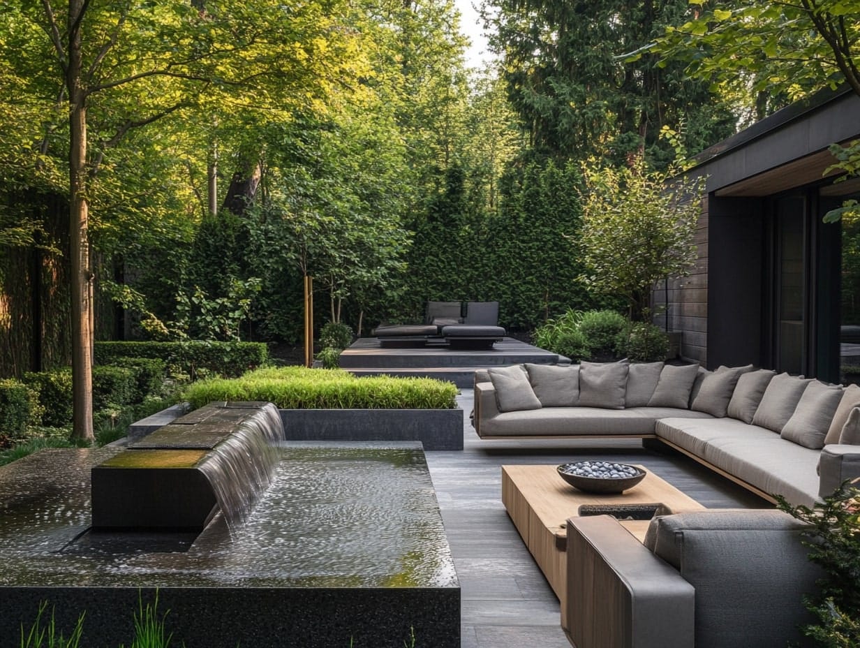 Outdoor Room with a Serene Water Feature